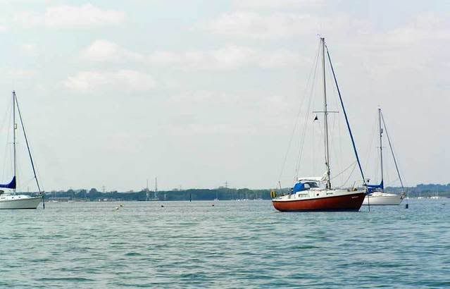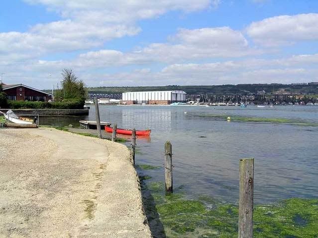 Landing stage and coffee stop with Vospers boat yard in the background. Sadly this slipway is private for Porchester Sailing Club only and I was scowled at by the locals.